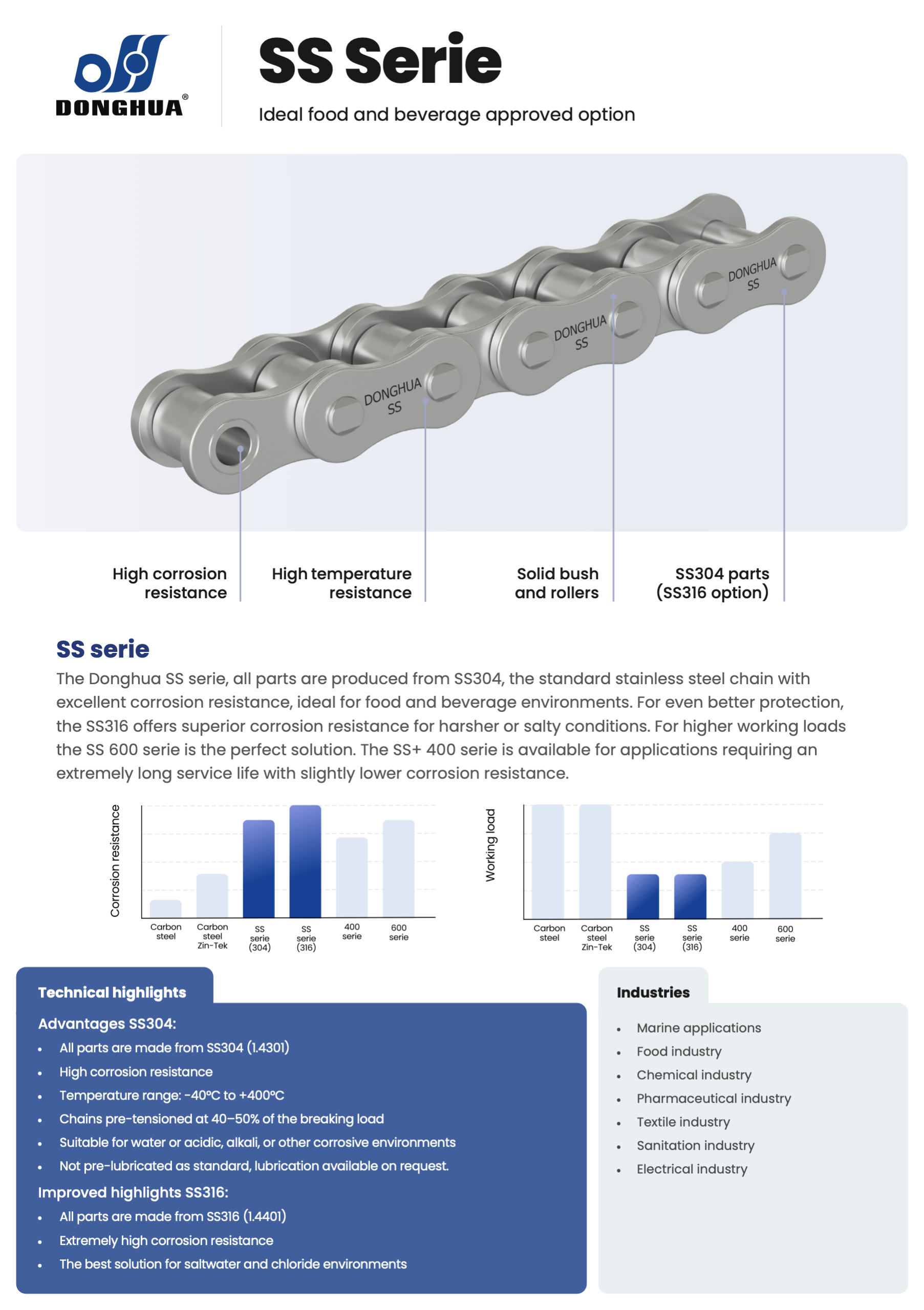 Donghua distinguishes the following applications, with dozens of variations in materials, construction or wear resistance for each specific application: